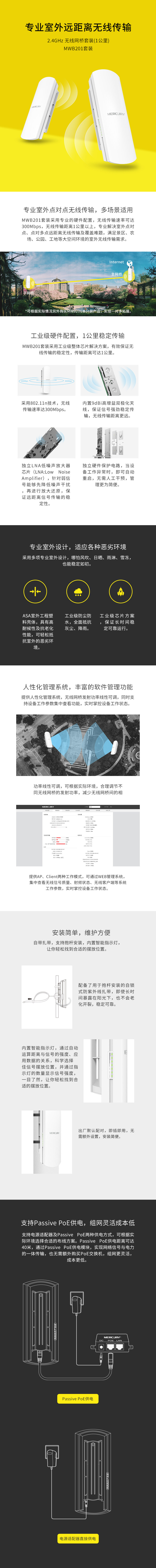 Mercury 1 км беспроводной сетевой мост, установленное на открытом воздухе с высоким уровнем мостира Wi -Fi Wi -Fi Мониторинг сети MWB201 набор