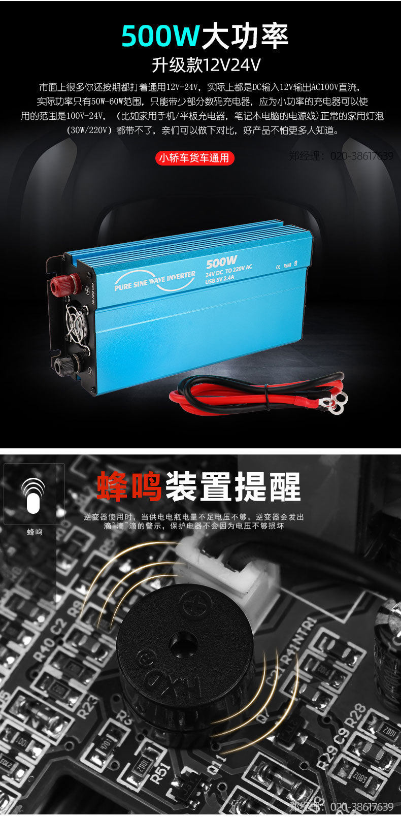 Pure -String 500 Вт инвертор DC12V в AC220 Home V -транспортный инвертор инвертор инвертор