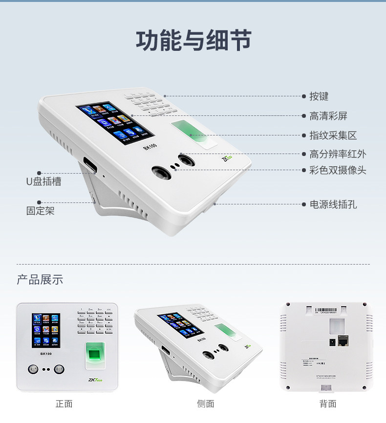 Zkteco энтропийная базовая технология SK1800 распознавание лица посещаемость машины для лицевой поверхности лица