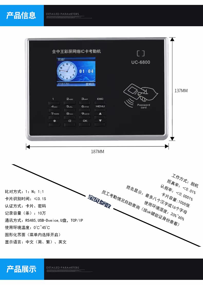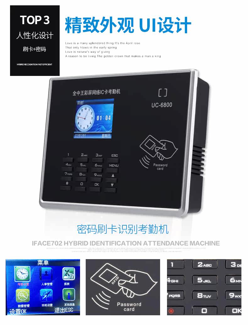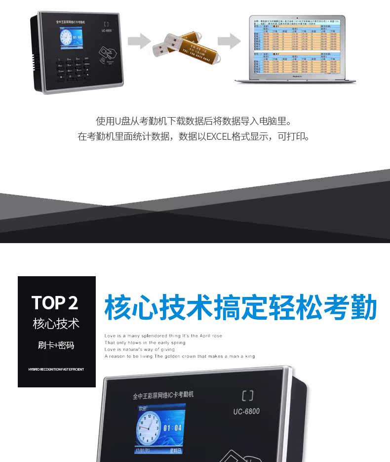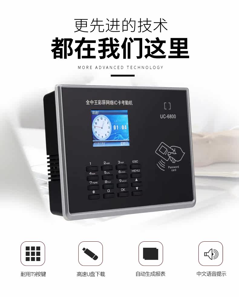 全中王 Учебный автомат посещаемости UC6800, чтобы уйти от работы в карте карты IC -карты с помощью машины для посещаемости карты карты.