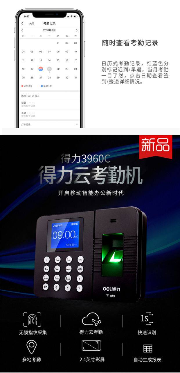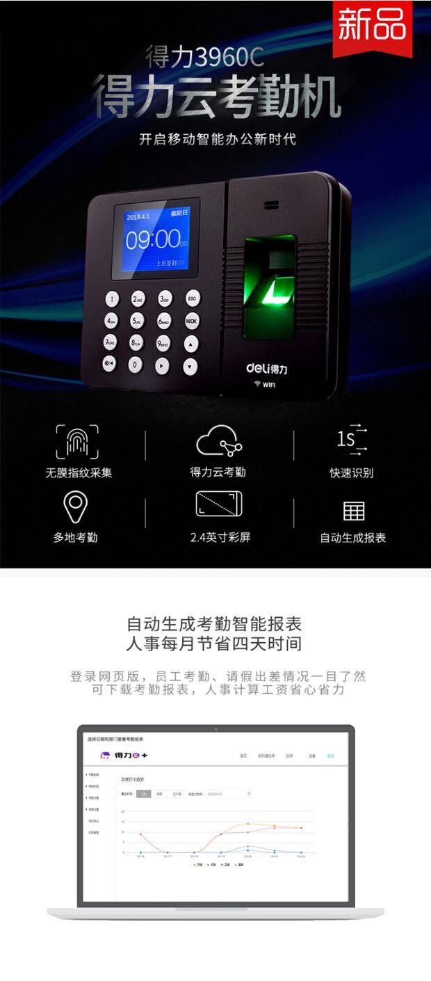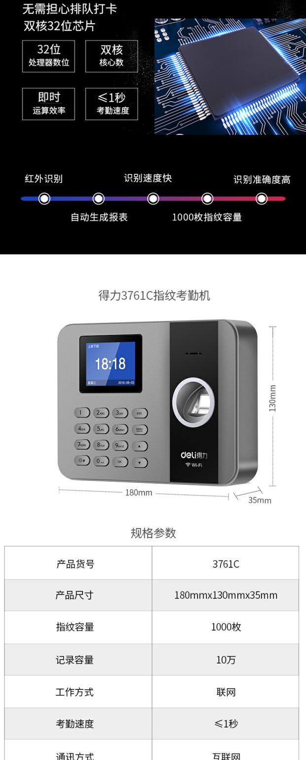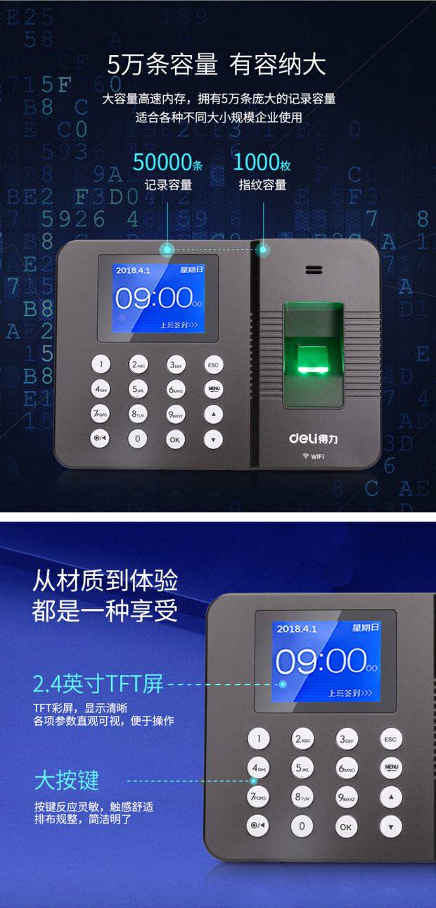 Deli 3761C Smart Cloud Candidate Finger Pingsprint/Mobile Plosing Wi -Fi Networking Знак -в машине для пикапа машины