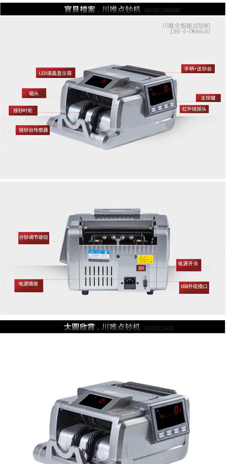 川唯 Машина для подсчета наличных денег JBYD-CW09A Class B Банк выигрышная ставка Bank Bank Banking Dual Screen Support 2024 Новая версия RMB