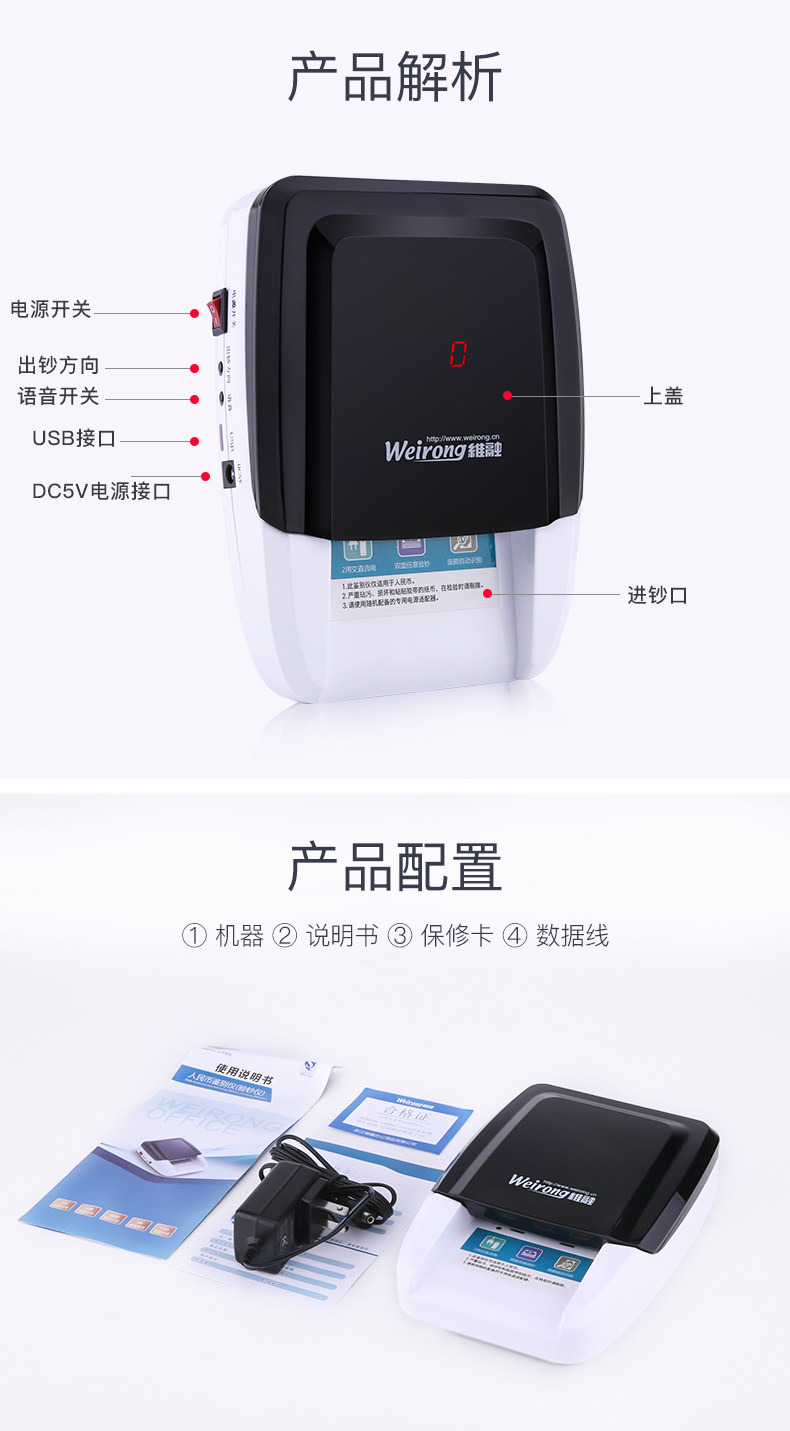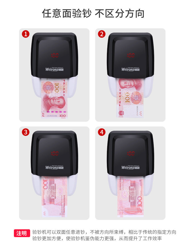 [Поддержка новой валюты] Детектор банкнот Weirong Маленький мобильный портативный портативный портативный зарядный домашний мини-поддерживает обновленную новую версию 2024 года в юанях Коммерческий автомобиль Интеллектуальная машина для счета голосов