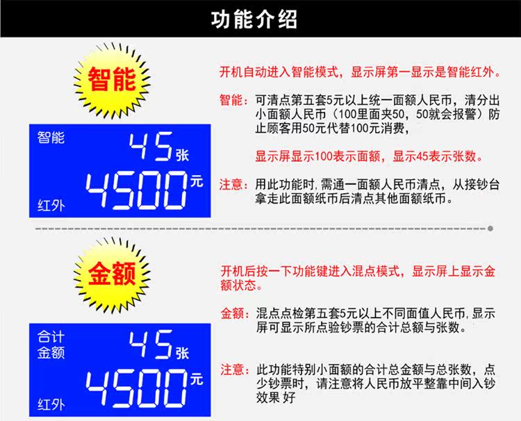 Сфера распознавания: легко идентифицировать четвертую версию50 100Юань, пятая версия5 10 20 50 100Лапша юаня (новая и старая версия совместимости RMB)