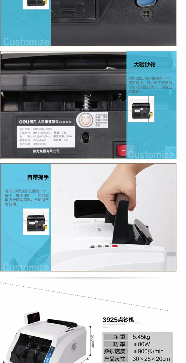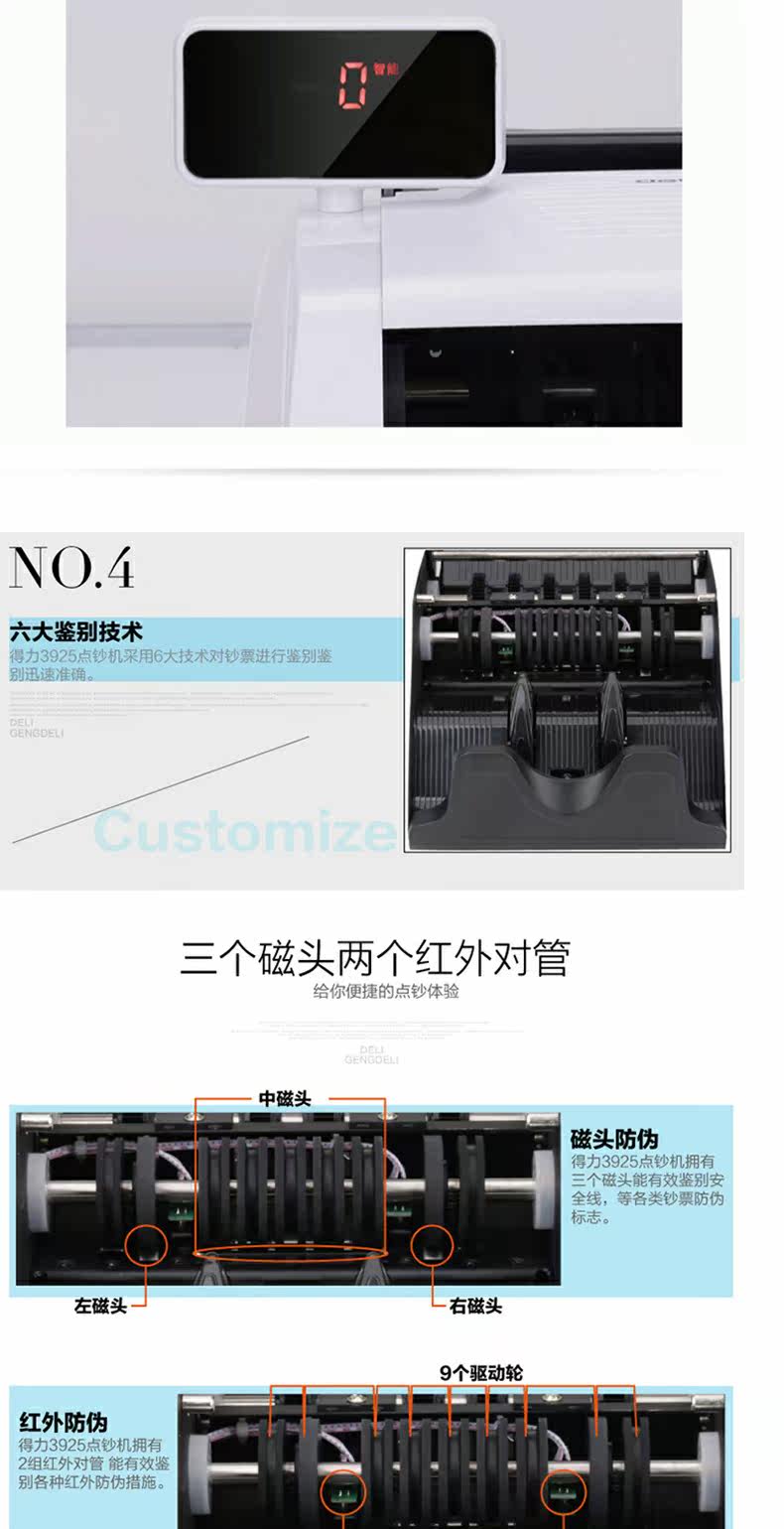 Deli New 3925S Intelligent Voice C -Class Precision Mix может поддержать новую версию RMB Small Homevable Portable Digital Money Machin