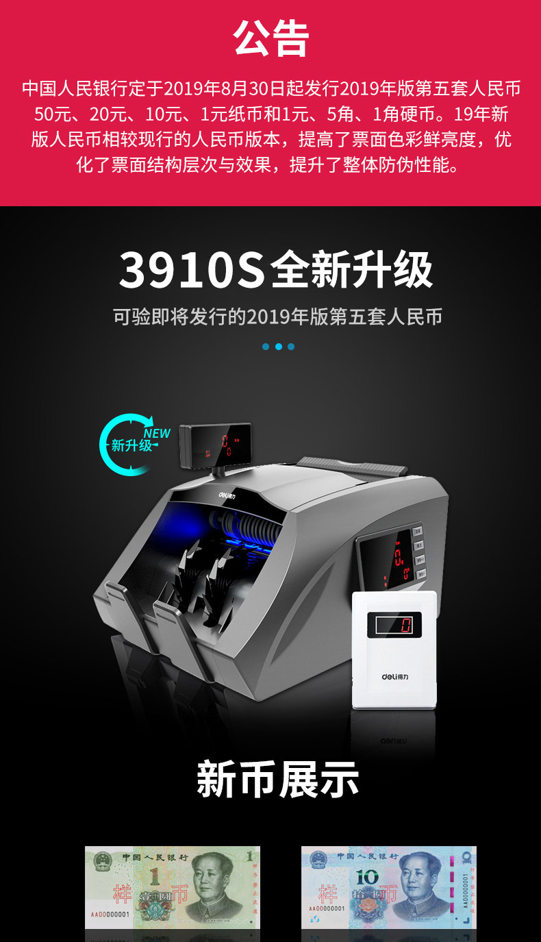 Категория B поддерживает новую версию новой версии новой версии RMB 3910S Smart Banknote Machine Digital Money Machin