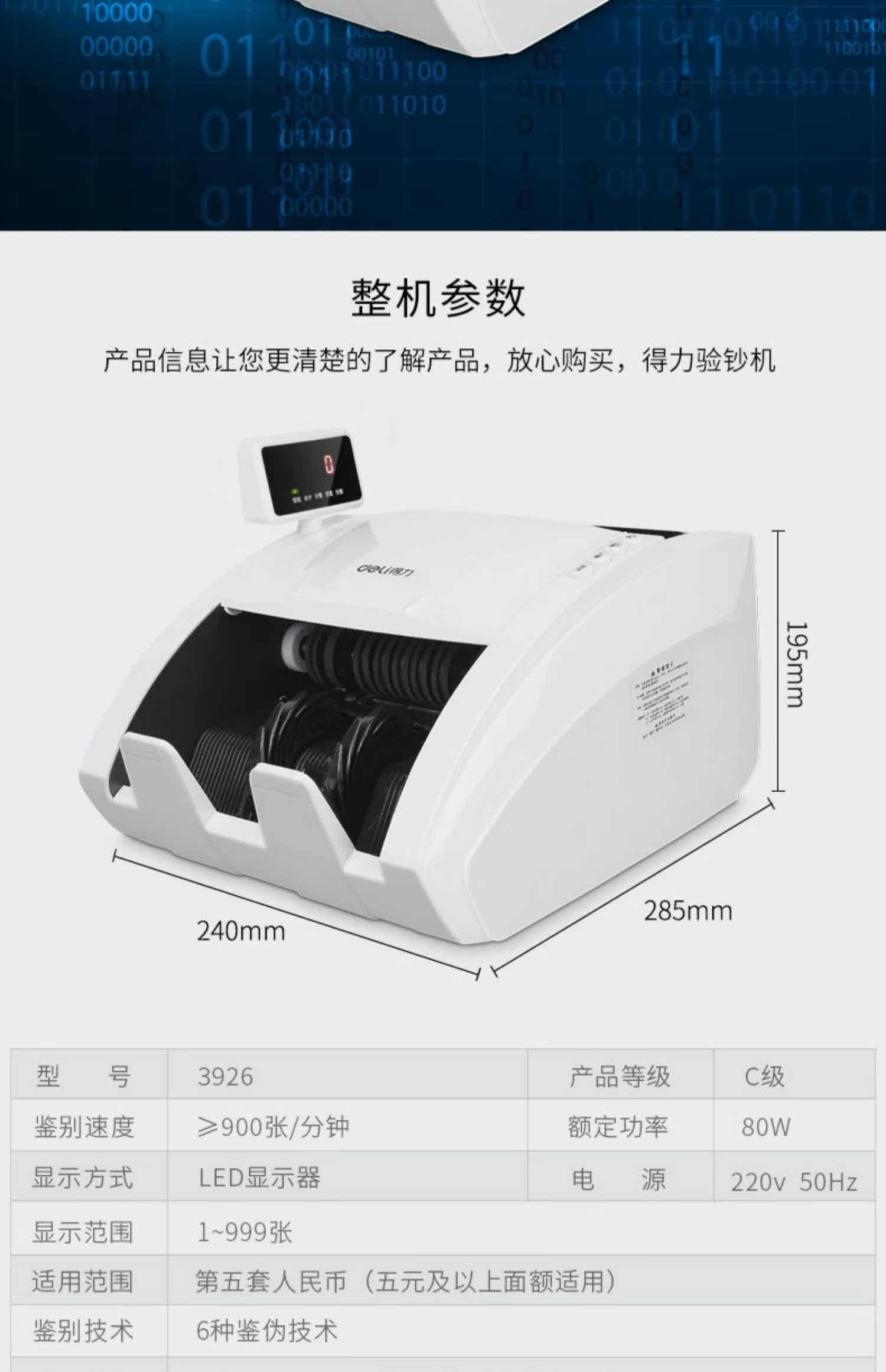 Deli 3926S Banknote Model Model Portable Banking Machine Smart RMB Маленькие банки поддерживают новую версию версии RMB 2019 года.