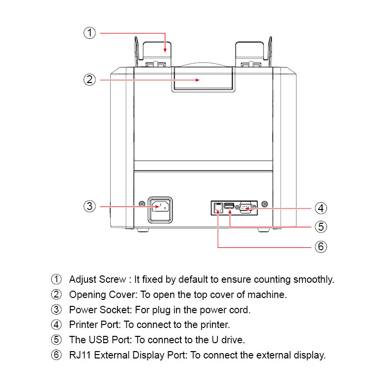 Размеры блока: 28 см (W)*26 см (D)*27 см (H) / 11”(W)*10.2”(D)*10.6”(H) Блок Пакет: N.weight: 6,5 кг G. Включение: 7,5 кг.&Режимы MDC Размер счетных примечаний: Минимум 110x60 мм, максимум 185x90 мм толщиной 0,08 ~ 0,12 мм Система подачи: Система трения ролика емкость: 400-500 otes емкость: 200 Примечания. Питание: AC 100 ~ 240V±10%, 50/60 Гц Ток: максимум 1,8А (100 ~ 240 В переменного тока) энергопотребление:<50 Вт температура окружающей среды: 0 ° C ~ 35 ° C (эксплуатационная) Рабочая среда: -10 ° C ~ 60 ° C (чулок) Окружающая влажность: 20% ~ 90% (без конденсации): USB, RS2 32 Размер упаковки: 68 * 38* 35 см (2 шт.