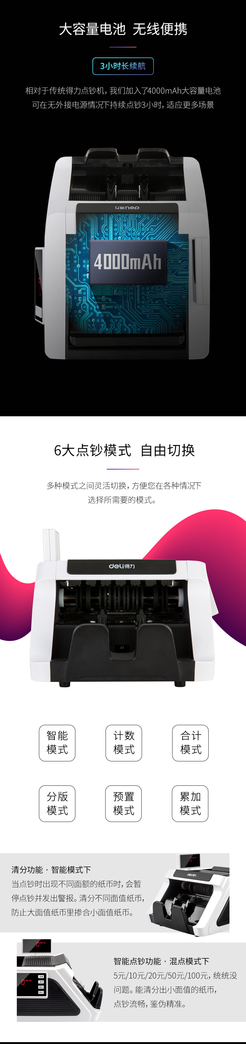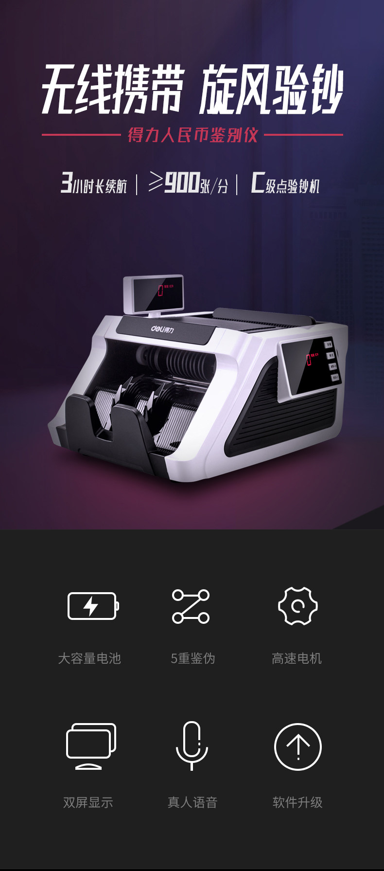 Deli 2170 Banking Office Special Model Model New RMB Portable Banknote Inspection Match