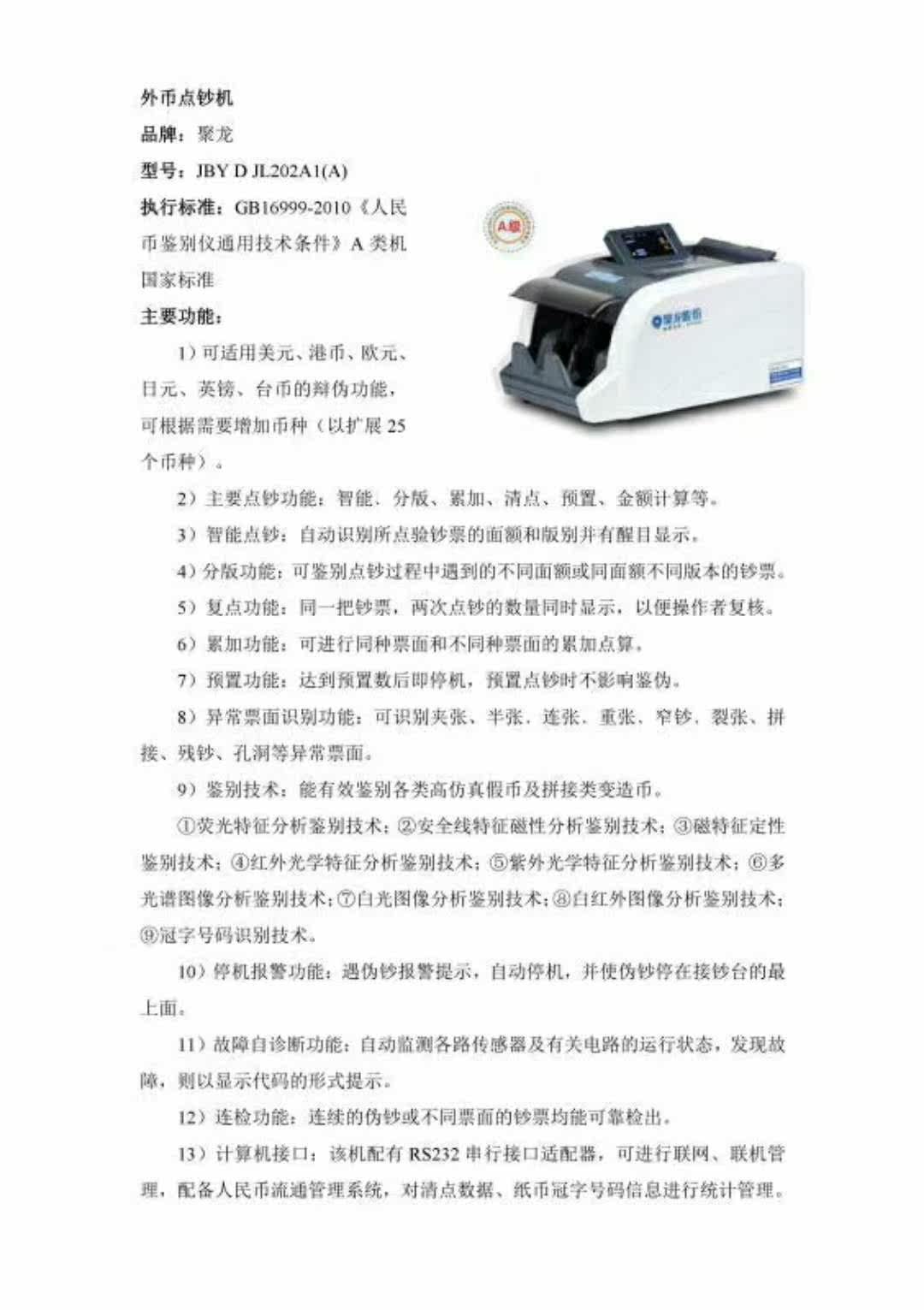 聚龙 Штрафная машина в иностранной валюте JBY D JL202A1 (A)