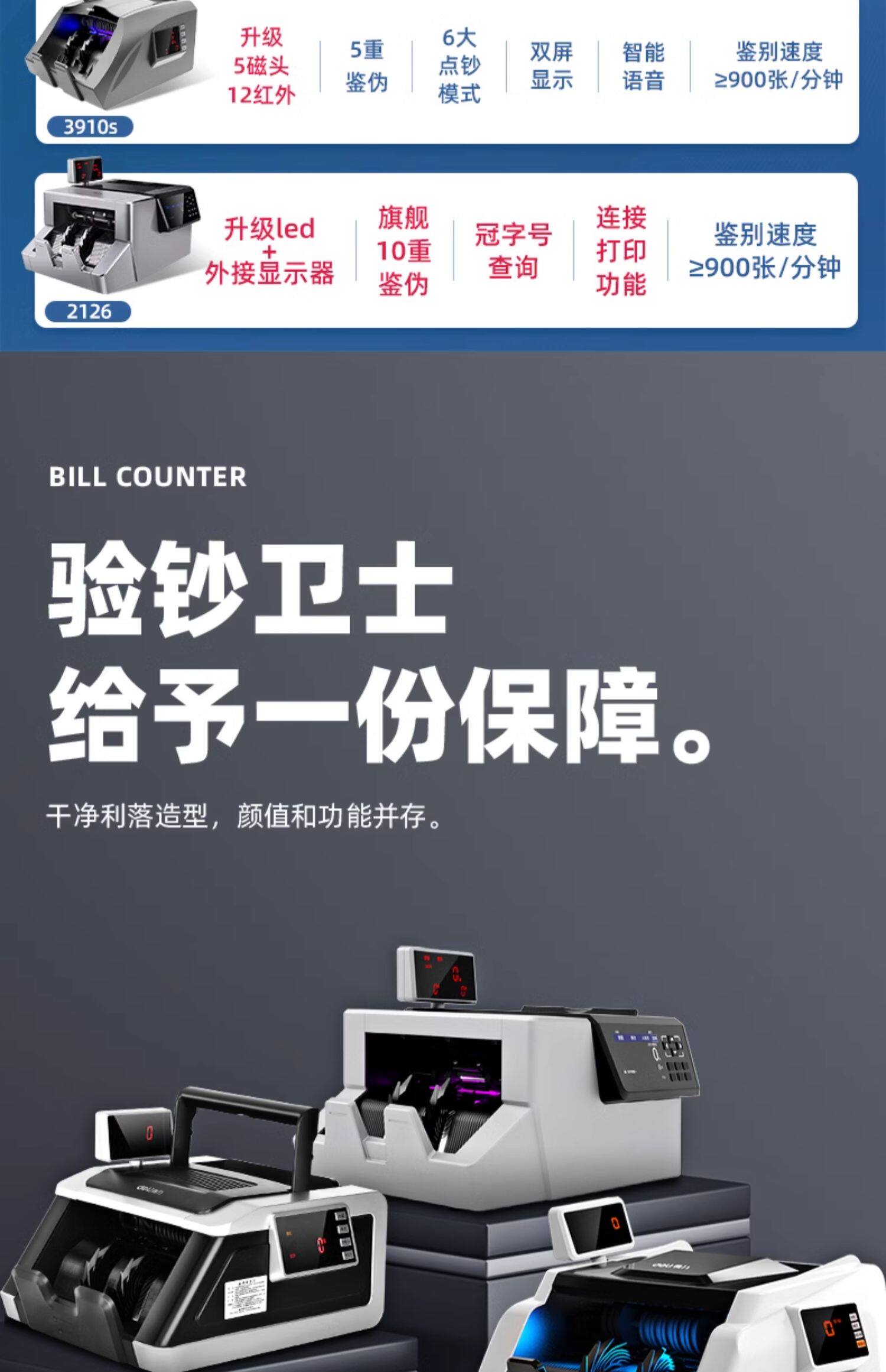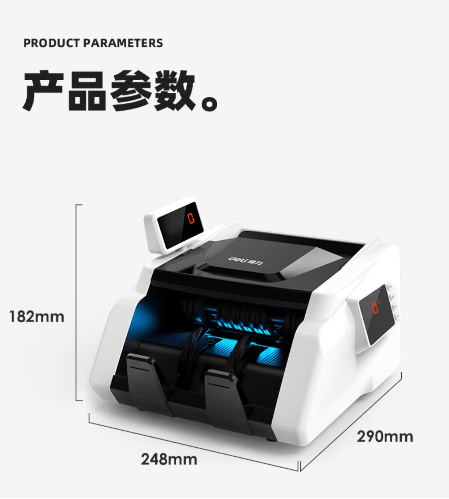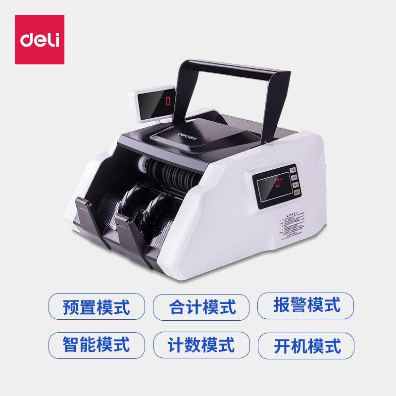 [Новая модель поддержки новые монеты] Deli Banknote Detecter Небольшой портативный интеллектуальный банкнот с подсчета машины Коммерческий кассовый регистр Мини Новая версия RMB Счетчик монет