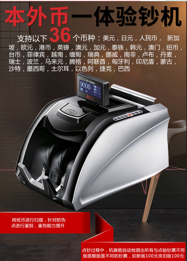 康艺 HT-9000U Иностранная валюта Машино-оформление, посвященное новой версии доллара США, RMB, YEN, Euro, Multi-страна