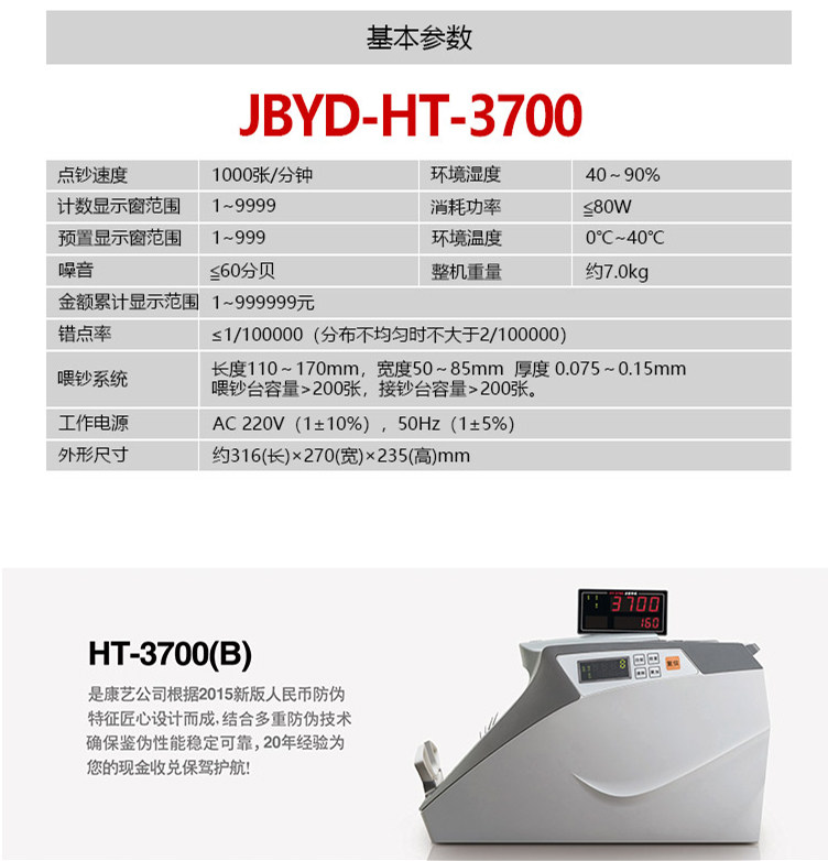 康艺 JBYD-HT-3700 (b) Специальный инструмент идентификации RMB, посвященный банковским делам BankNotes
