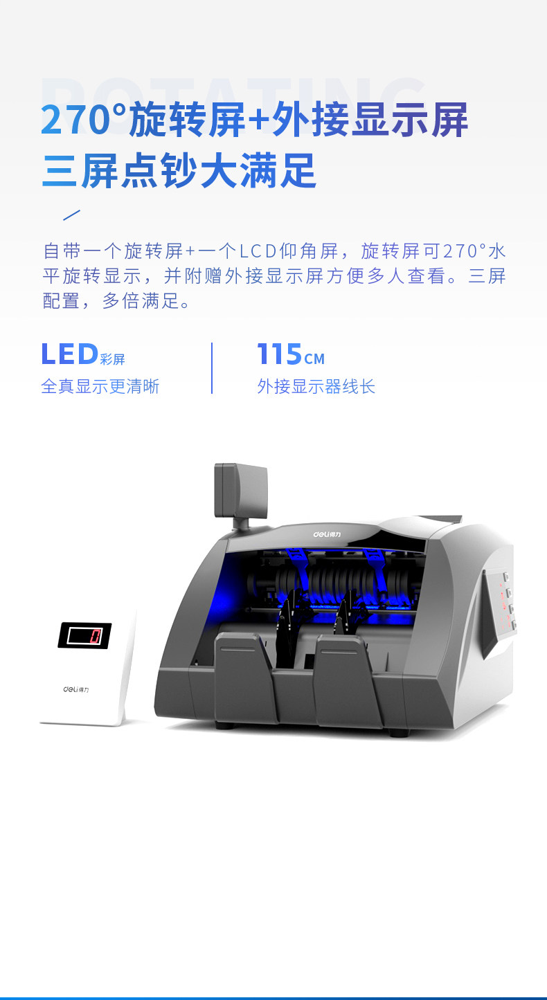 Deli 3910S Банковская машина банковская машина класс B Класс B Двойной экранно -экранный тест поддержки 2020 Новая версия новой версии RMB Smart Office Home Home -Point Banknote Money Commercial Number Money Three -Escreen Display