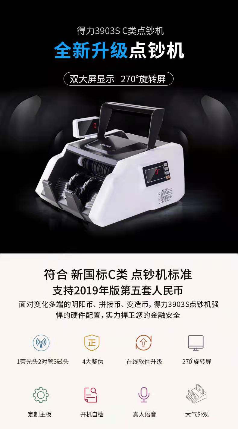 Deli 3903S Двойной экрановой категория Smart C Banknote Machine Banknote Inspection Machine Bank, посвященный определению пятого набора RMB