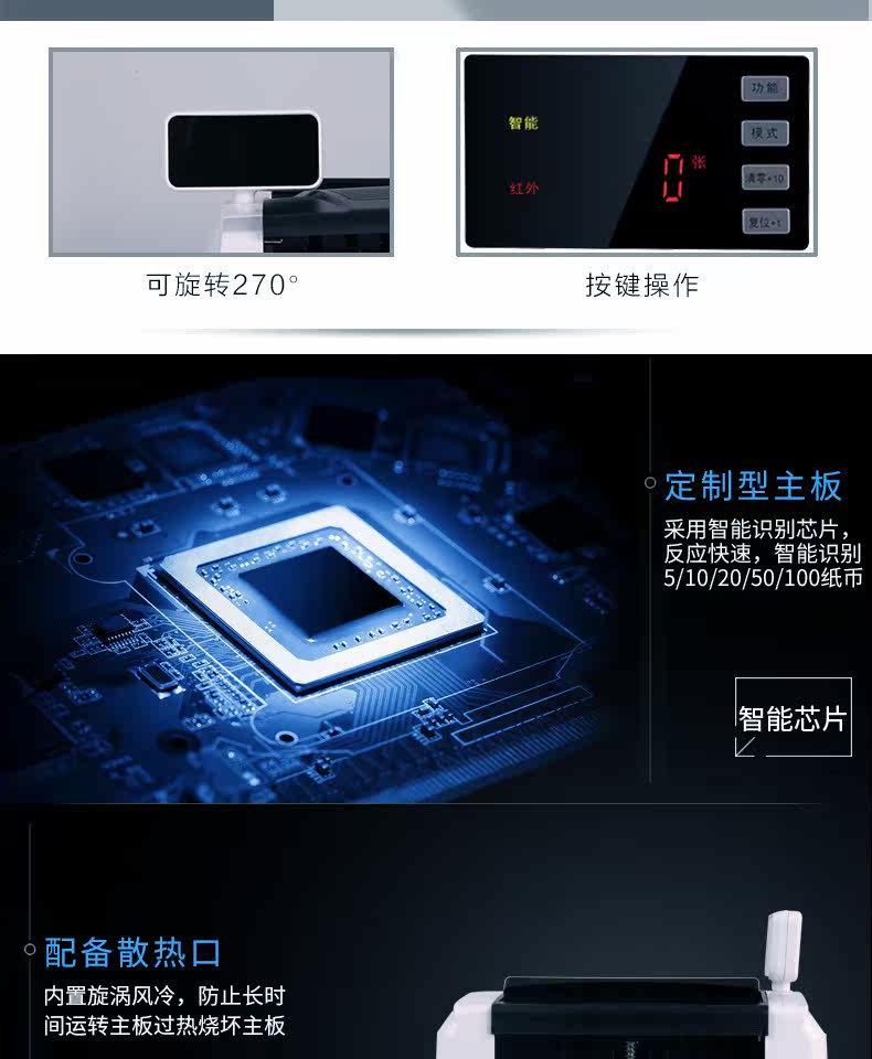 Deli New 33302S Money -dot Machine C класс Money Test Machine Коммерческий кассовый реестр Смарт -голос микширование Money Test Machine Двойной дисплей 270 градусов вращения