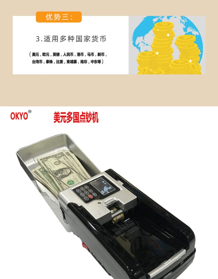 Зарядка портативных денег -Машина заказ в долларах США евро многоокружение точечная валюта машины инспекции с литиевым батареем.