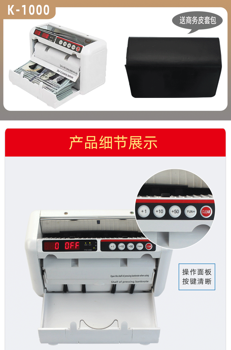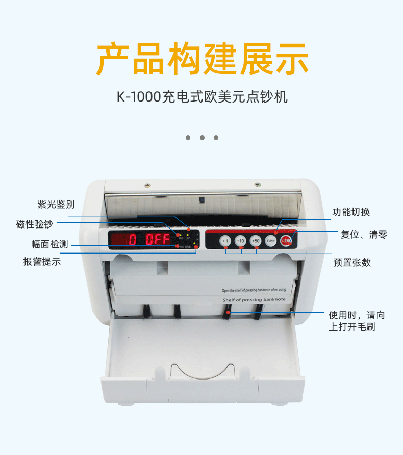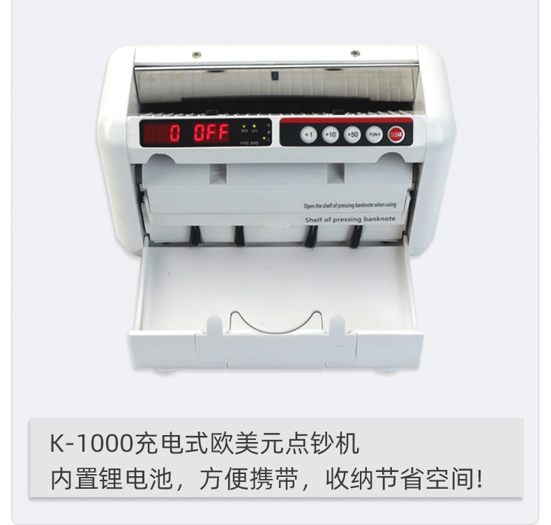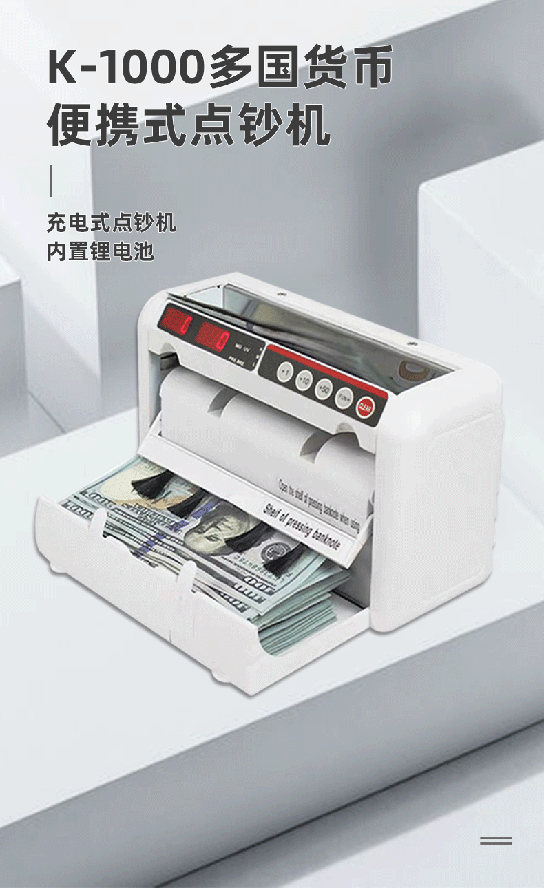 K-1000 взимается с европейскими и американскими долларами Money Dot Machine с литиевыми батареями, портативные для отправки рюкзак для бизнеса, тестовая машина, коммерческое использование кассира кассир, количество денег