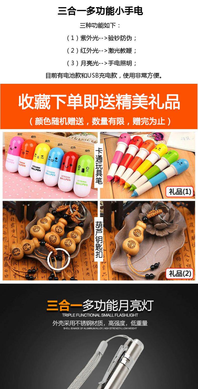 Универсальный маленький портативный ультрафиолетовый фонарь с лазером