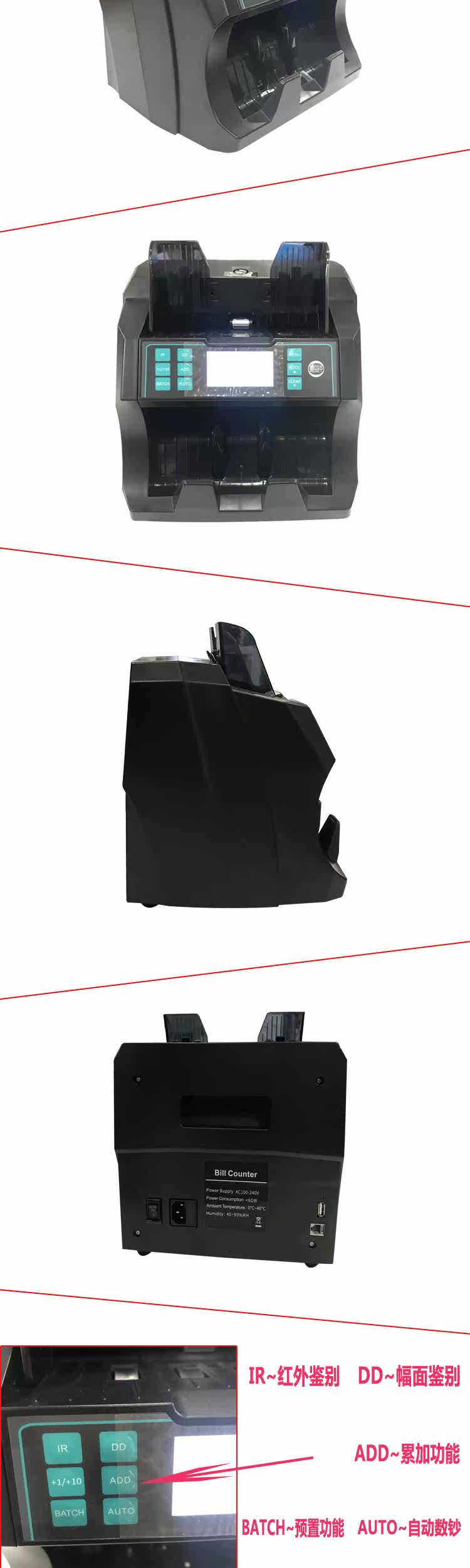 Доллар США вертикальный банкнот Dot Machine Multi -National Office Cashier Point Banknote Инспективный машина английская евро вертикальная иностранная валюта Коммерческая машина денежных переводов