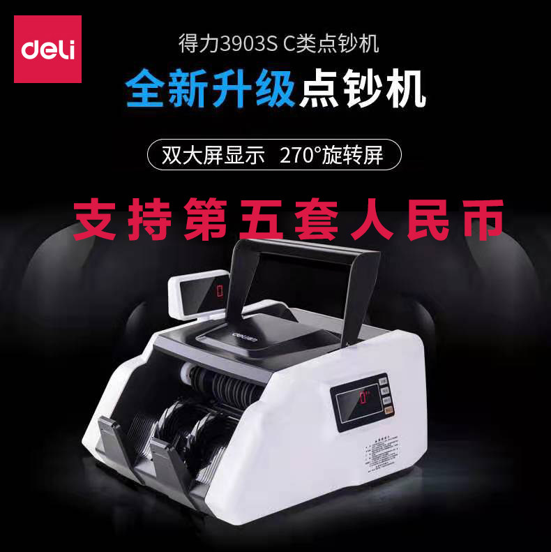 Deli 3903S Banknote Dippermine New Renminbi Bank Special C Type Small Portable Dual -Escreen Banknote Inspection Machine Коммерческое использование