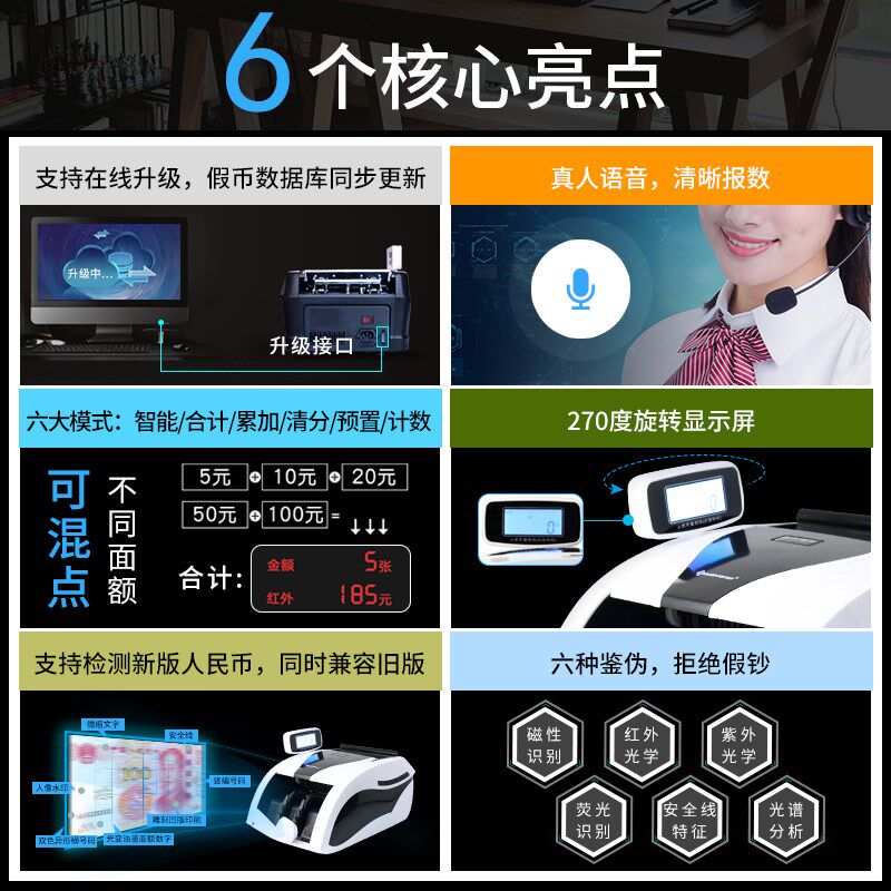 2020 Новая домашняя интеллектуальная интеллектуальная небольшая коммерческая банкнота монстр тестовая машина поддерживает сингапурские монеты, смешивая и в сочетании с общей суммой B