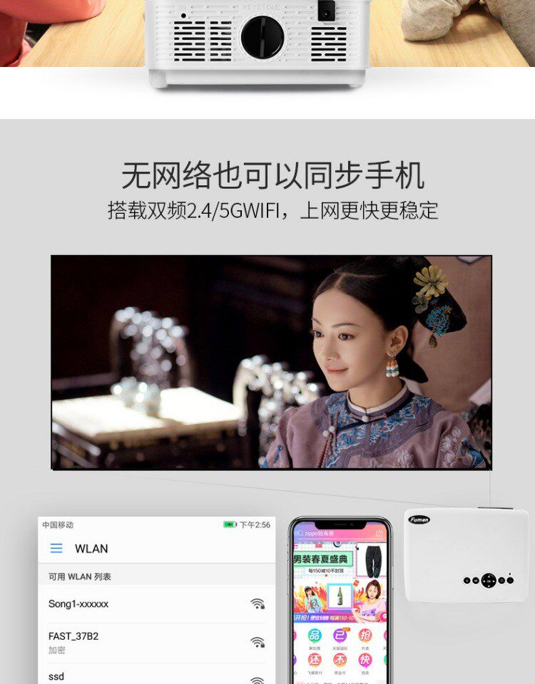 Проектор проектора Fumanmen HD 1080p Wireless Wi -Fi Mobile 3D Micro Smart