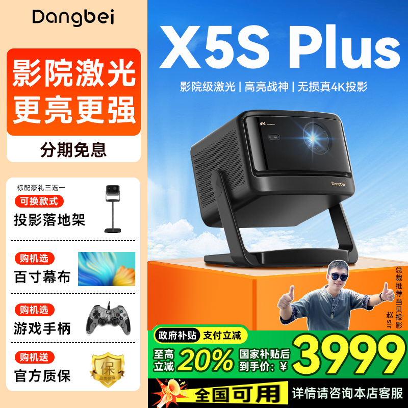 [Правительственная субсидия 20%] Dangbei x5s плюс лазерный глянец проектор 2025 Новый продукт Home Ultra HD High Bright Smart Smart Screan Proctor Laser TV Projector Low Blue Light Geather