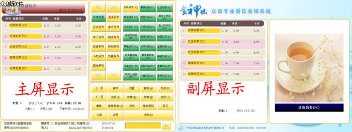 Четырехкорночный двойной экран 15 -блюда еда кассир POS с сенсорным экраном Коллекция молока чайное оборудование кассир заказа заказать блюда по всей стране Бесплатная доставка