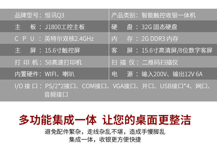 zgo Кассир кассир Q3 Смарт -кассир интегрированный компьютерная машина для молока -чайная магазин Чистый красный пекарня десерт -магазин Поселенщик внутренний принтер сканер супермаркет магазин кассир с сенсорным экраном.
