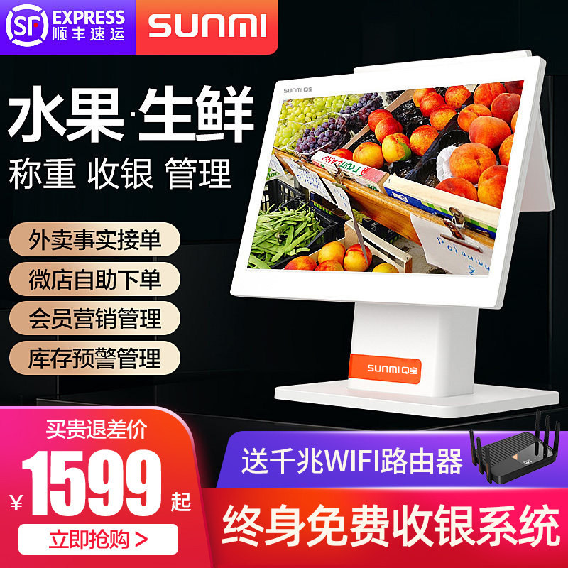 Sunmi Shangmi Qbao Shop Shop утверждает, что кассовый аппарат все -in -in to Touch к двойному экрану свежие свежие закуски супермаркета приготовленная овощная овощная столовая для овощной кассиры кассовые аппараты Коммерческая гибкая платежная машина