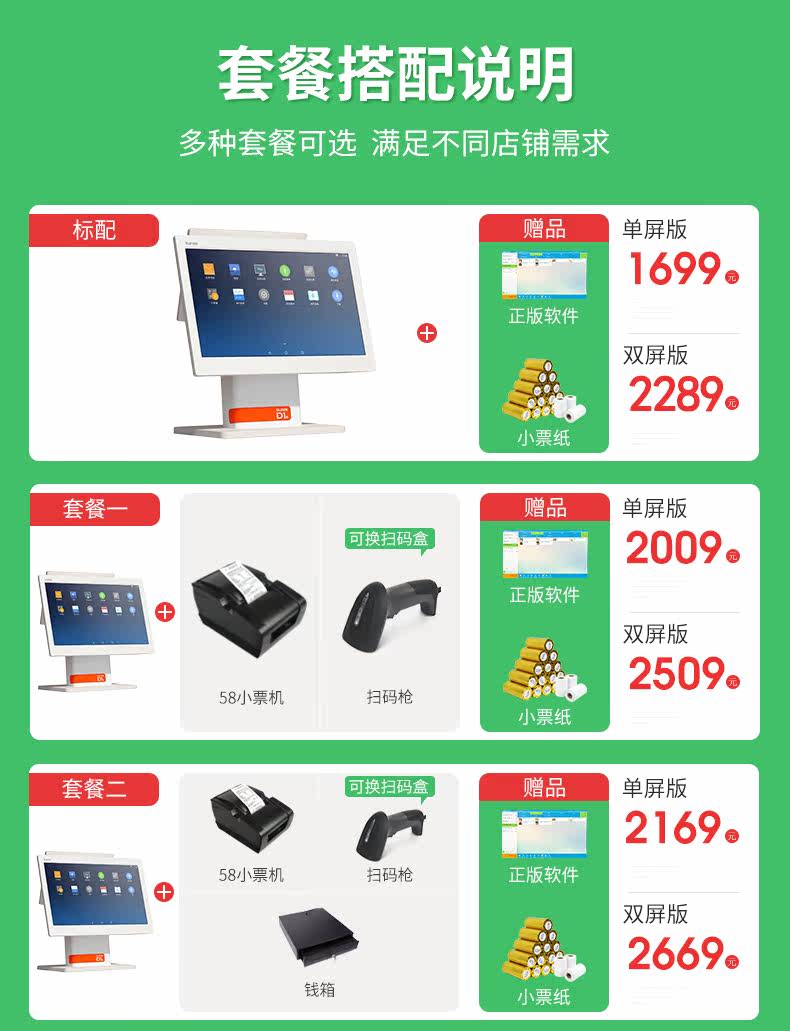 | Цвет: | Стандартный [одноразовый кассовый регистр], Пакет 1 [Одиночный кассир+небольшая билетная машина+сканирующее пистолет], Пакет 2 [Одиночный кассир+небольшая билетная машина+сканирующая пистолет+ящик для денег], Пакет 3 [Одиночный кассир+небольшая билетная машина+сканирующая пистолет+электронная шкала Dahua], Пакет 4 [Одиночный кассир+небольшая билетная машина+сканирующая пистолет+электронная шкала Dahua+Box], Пакет 5 [Одиночный кассир+небольшая билетная машина+сканирующая пистолет+электронная шкала Dahua+метка метки], Стандарт [Двойной кассовый регистр], Пакет один [двойной кассир+небольшая билетная машина+сканирующая пистолет], Пакет 2 [Dual -Eschreen Cashier+небольшая билетная машина+сканирующая пистолет+денежная коробка], Пакет третий [Двойной кассир+небольшая билетная машина+сканирующая пистолет+электронная шкала Dahua], Пакет четыре [Двойной кассир+малая билетная машина+сканирующая пистолет+электронная шкала Dahua+Box], Пакет 5 [Двойной кассир+небольшая билетная машина+сканирующая пистолет+электронная шкала Dahua+метка метки], Одиночный экран [Fresh Fresh Retail Set+Code Scanning Gun], Двойной экран [Fresh Retail Set+Code Scanning Gun], Шкала штрих-кода [Dahua TM-F], Open [Mini Program Service Consultation Service Customers] |