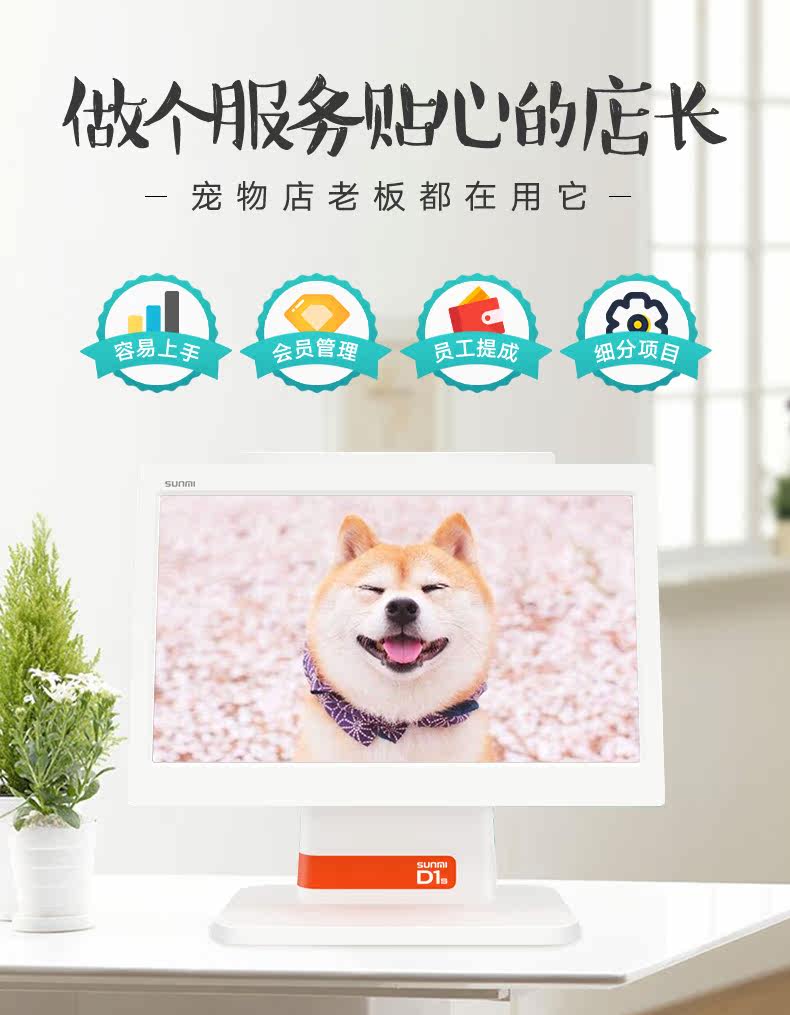 Sunmi Shangmi Pet Store сенсорный экран кассира платежная машина платежная машина для бронирования машины, способствующая формированию программного обеспечения для профессионального управления матери и детской красотой.