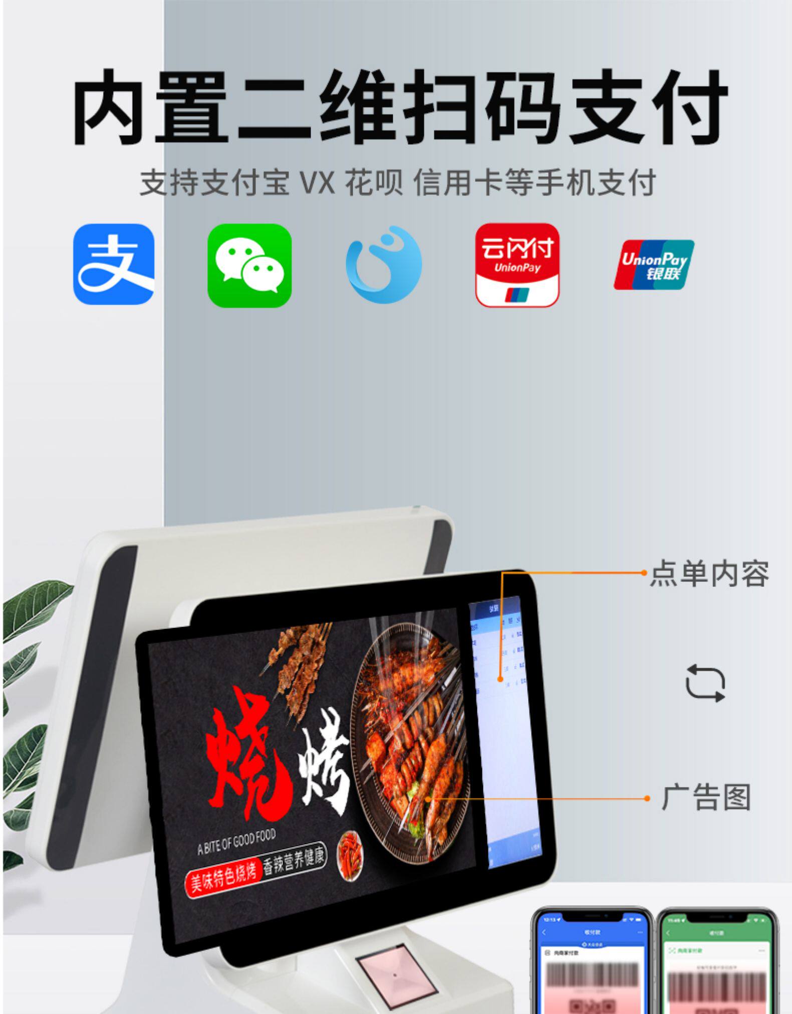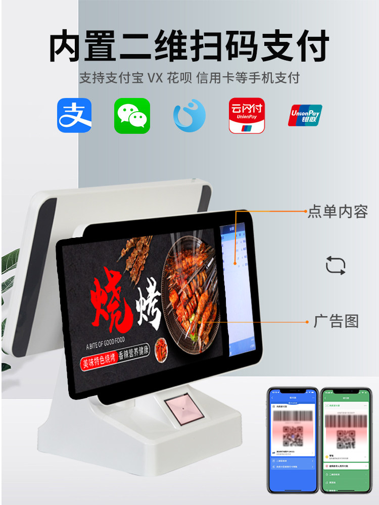 Supermarket Touch Cash Register All -IN -Один магазин с молочным чаем чистка, участники с двойным экраном быстрого магазина, выпечка театра