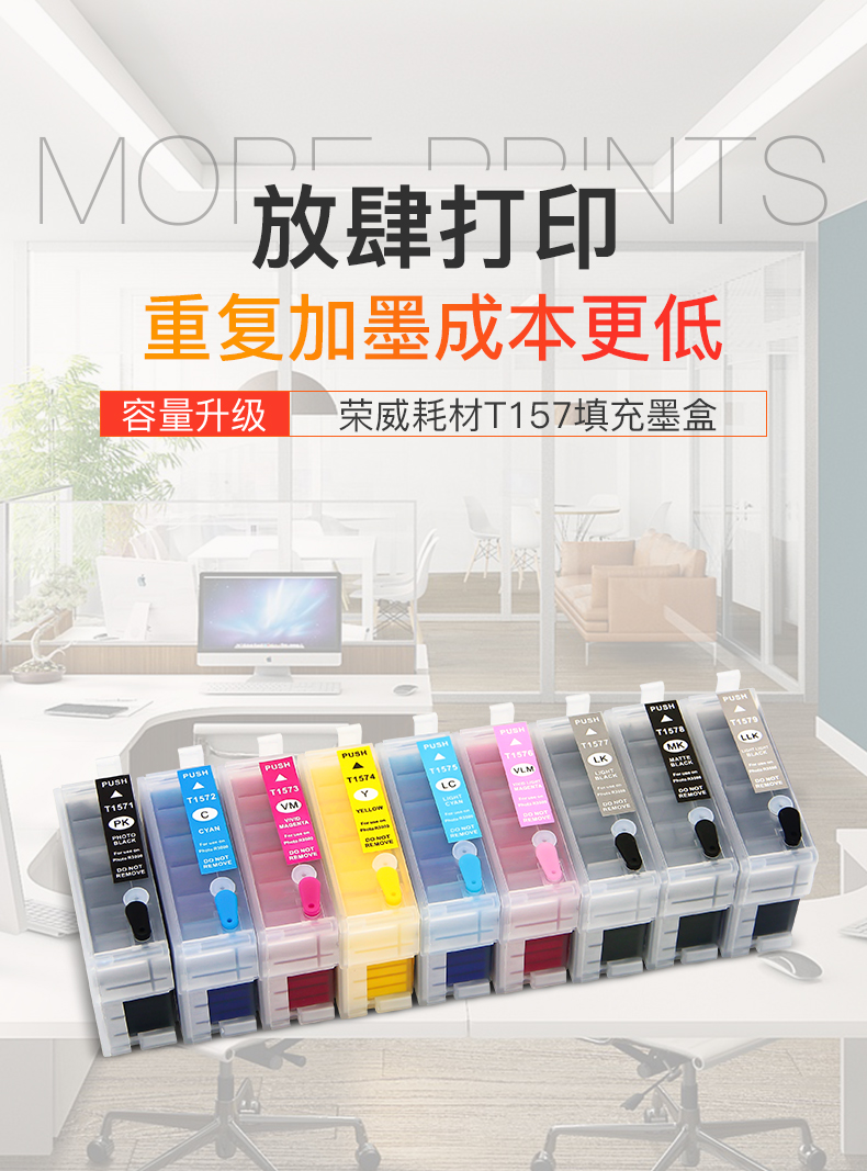 荣威耗材 Epson, принтер, картридж, вместительные и большые пигментированные чернила, T157, T7601, 9 цветов, 30 мл