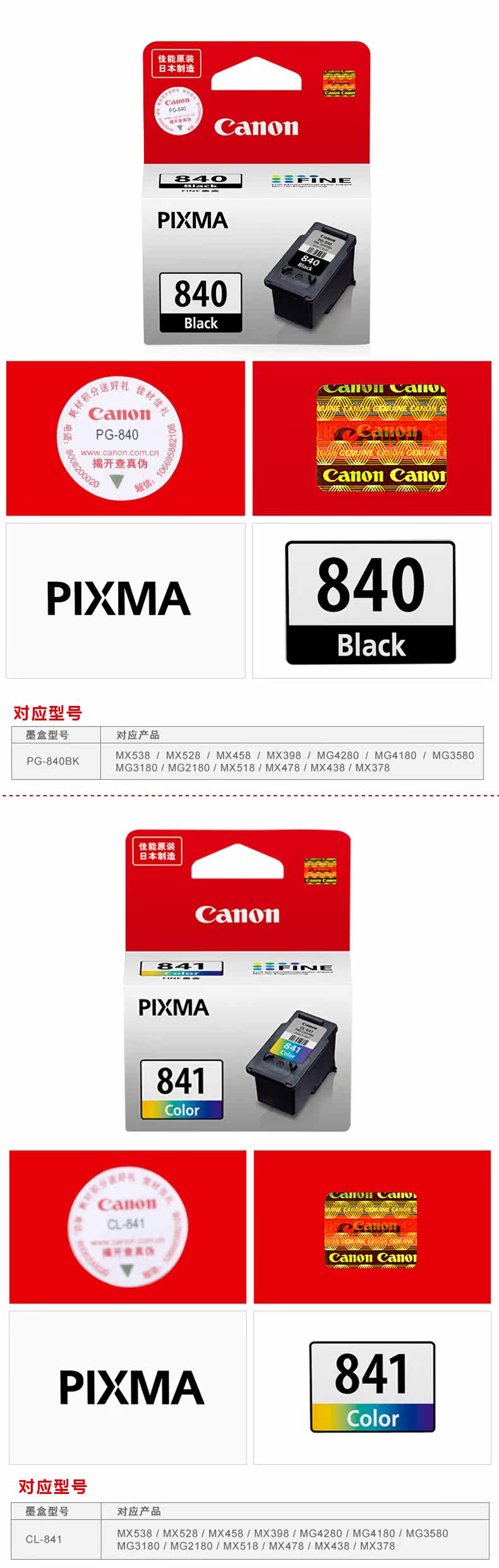 Canon PGI-840 CL841 Оригинальная чернильная коробка MG3680 MX538 TS5180 Оригинальная чернильная коробка PGI-860 CL861 Оригинальная чернильная коробка TS5380 6380 Оригинальная чернильная коробка
