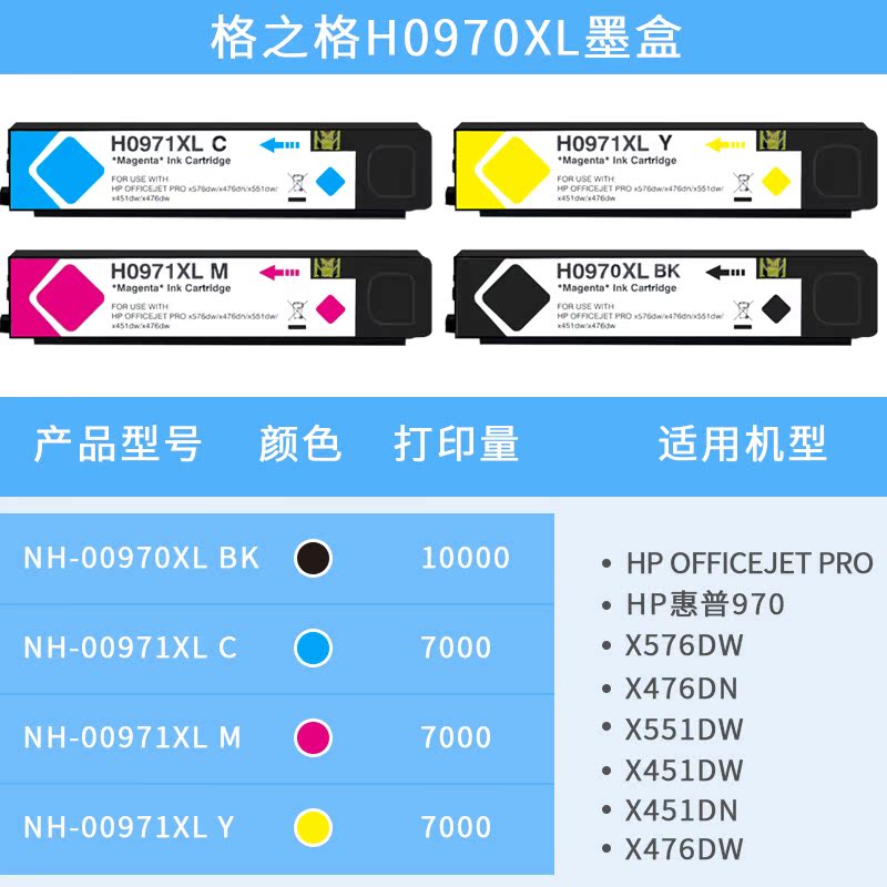 格之格 HP, совместимый картридж pro, HP970, HP971, x576, x476, x551, x451, x451, x476