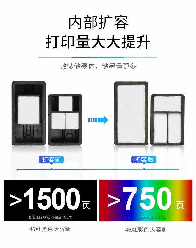 - 46 Цвет/большие емкости/легкие чернила/могут воспроизводить 750 страниц