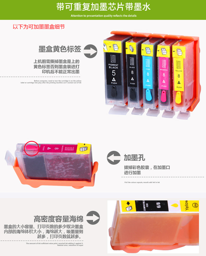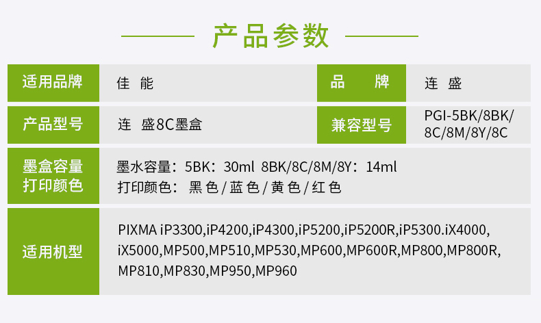 连盛 Совместим с Canon IX4000 чернильным картриджем PGI-5BK CLI-8BK IX5000 IP4200 IP3300 PIXMA PRO9000 CLI-8M 8Y 8Y 8Y 8R 8R 8G