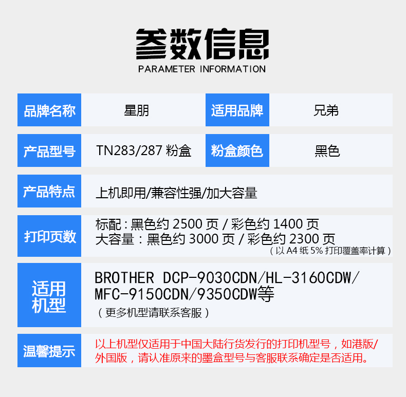 星朋 Применимый брат TN-283 TonerChin HL3160CDN 3190CDW ПРИНТЕР КОНКА