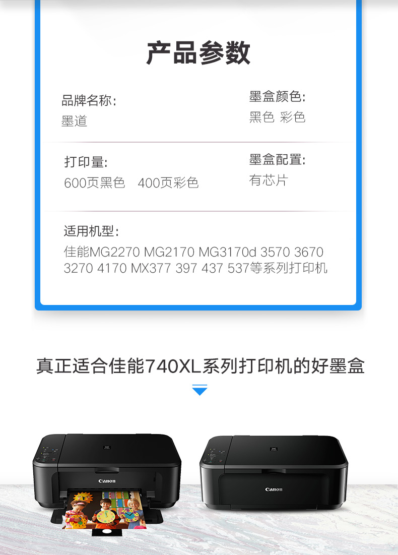 墨道 Применимый Canon PG-740XL CL-741 Цвет чернил картридж MG3670 2270 2170 MG3170D 3570 3270 4170 ПРИНТЕРНАЯ КОРОКА MX377 397 437