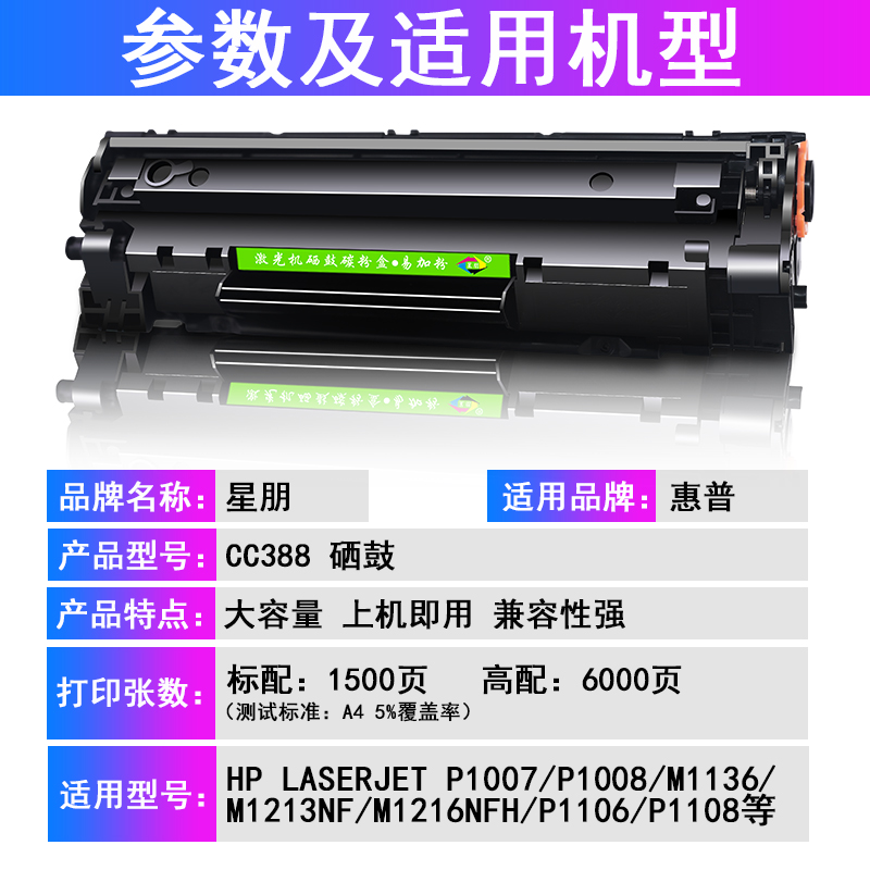 It is suitable for HP M126A ink box HP M1136MFP CC388A Ink cartridge M126A M1213NF M128FN Laserje TP1007 P1106 P1108 Chronicle 388a Drum Drum Drum Drum