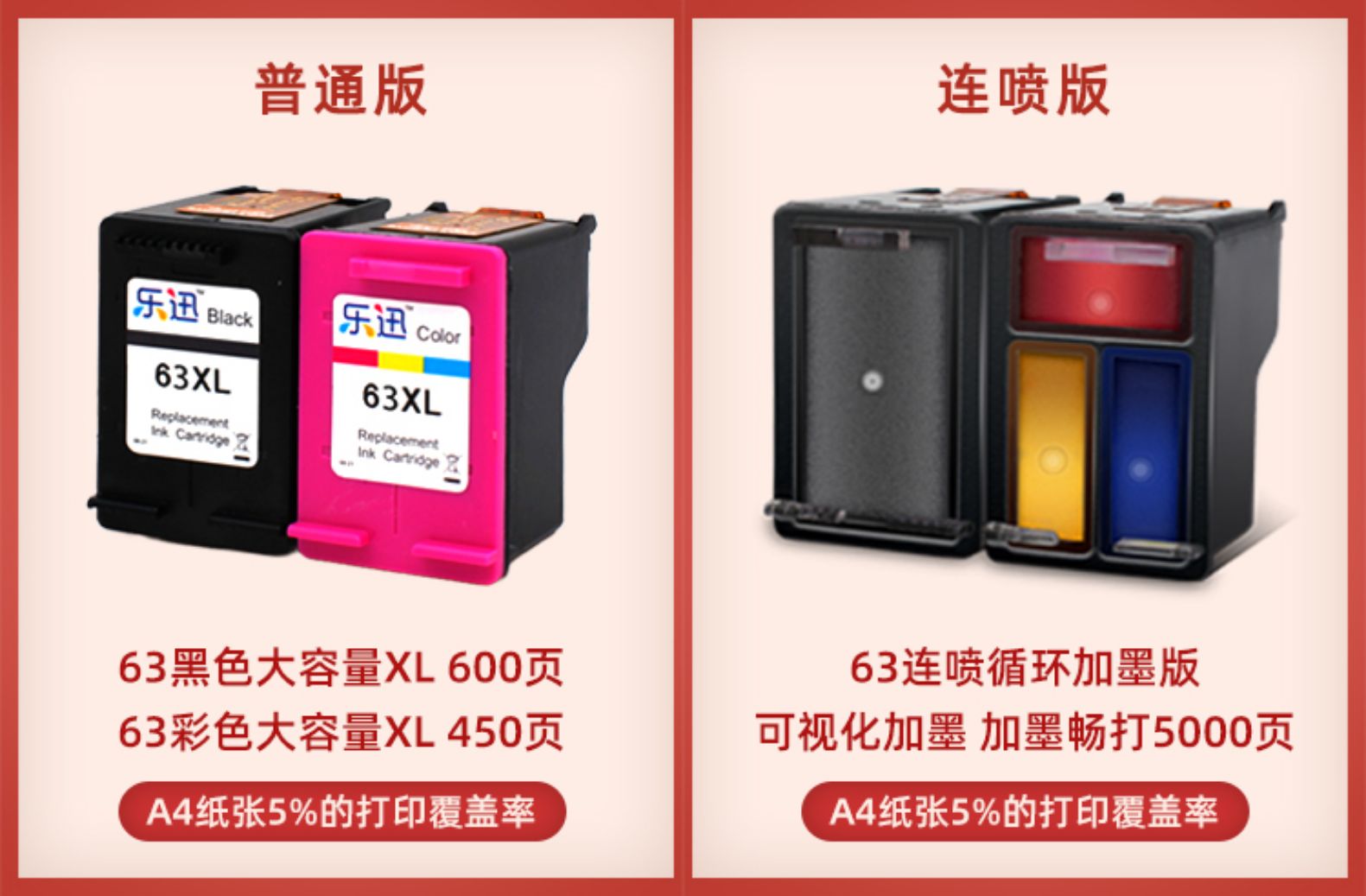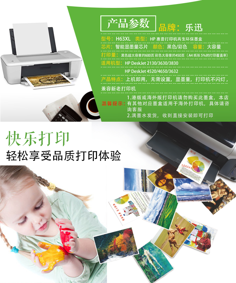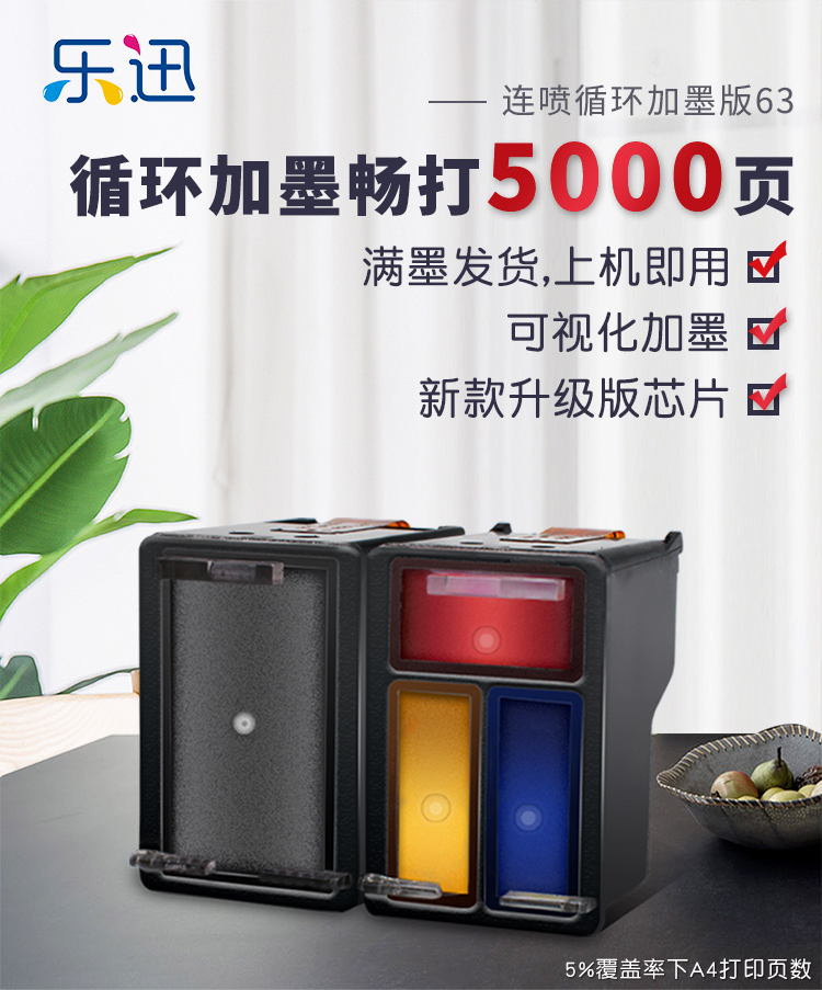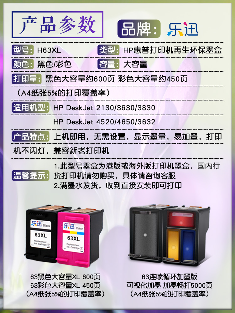 乐迅 Совместим с HP HP63XL чернильным картриджем HP OfficeJet 2130 3630 3830 4520 4650 3632 2131 ПРИНТЕРНА