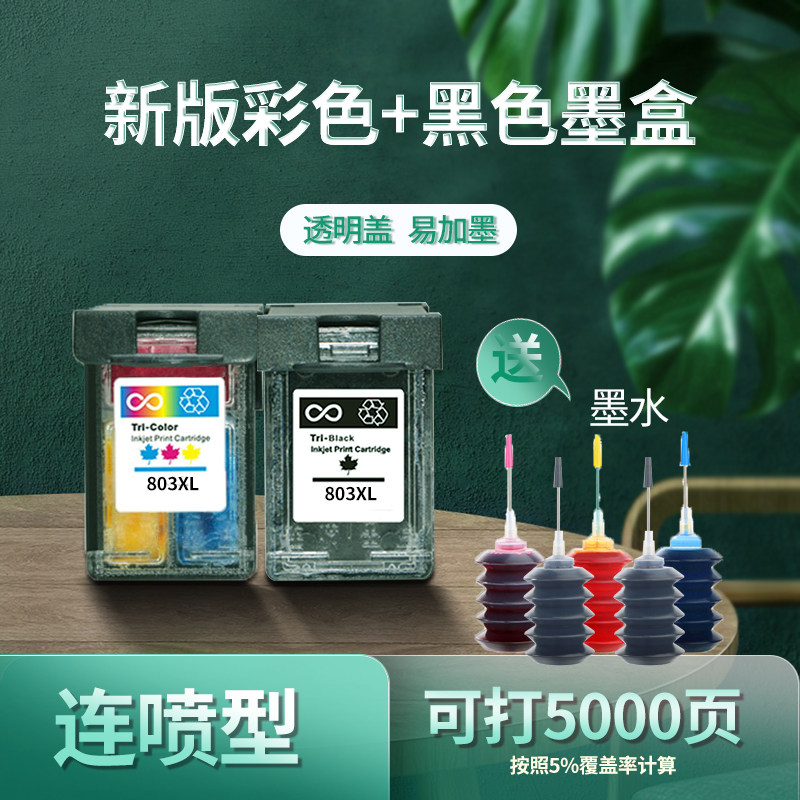 Zhengemei совместим с HP 803 чернильным картриджем черного цвета, настольный настольный, HP2132 1112 2621 2123 2620 2131 2622 Принтер чернила картридж Большая емкость может добавить чернила SFF