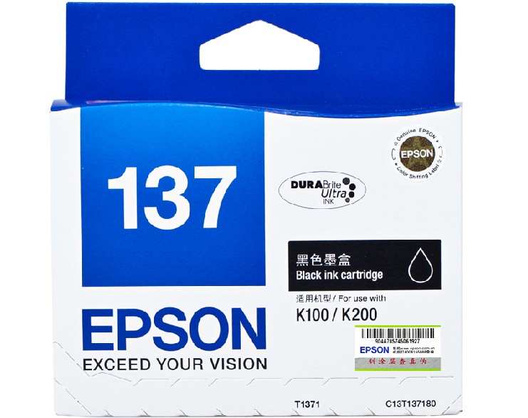 Оригинальный подлинный Epson Epson T1371 чернильный картридж, подходящий для K100 K105 K200 K205 K305 T137 чернильный картридж Принтер черные черные