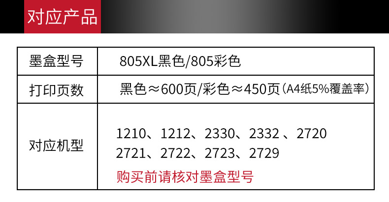 - Ультра -высокая емкость 805xxl черные чернильные картридж (1000 страниц)