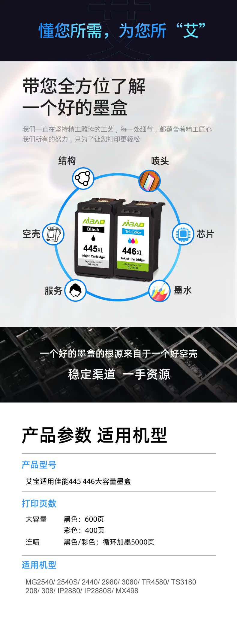 Aibao подходит для чернильного картриджа Canon PG445 CL446 чернильный картридж с большой способностью Canon MG2540 MG2540S MG2440 MG2940 IP2840 MX494
