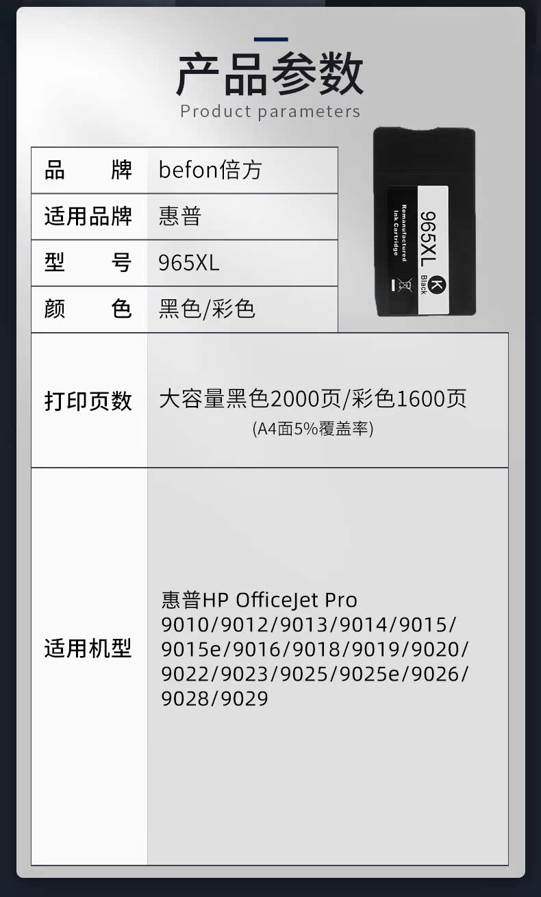 HP, совместимый картридж, черный регенерирующий вместительный и большой оригинальный принтер, HP965, HP9010, 965