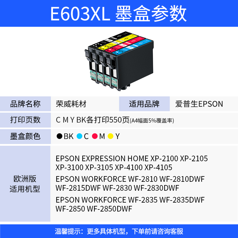 Применимо Epson T603XL Ink Box Epson XP-2105 3100 3105 XP-3150 XP-4105 4105 WF-2835 2810 2850DWF Принтер КОРОК