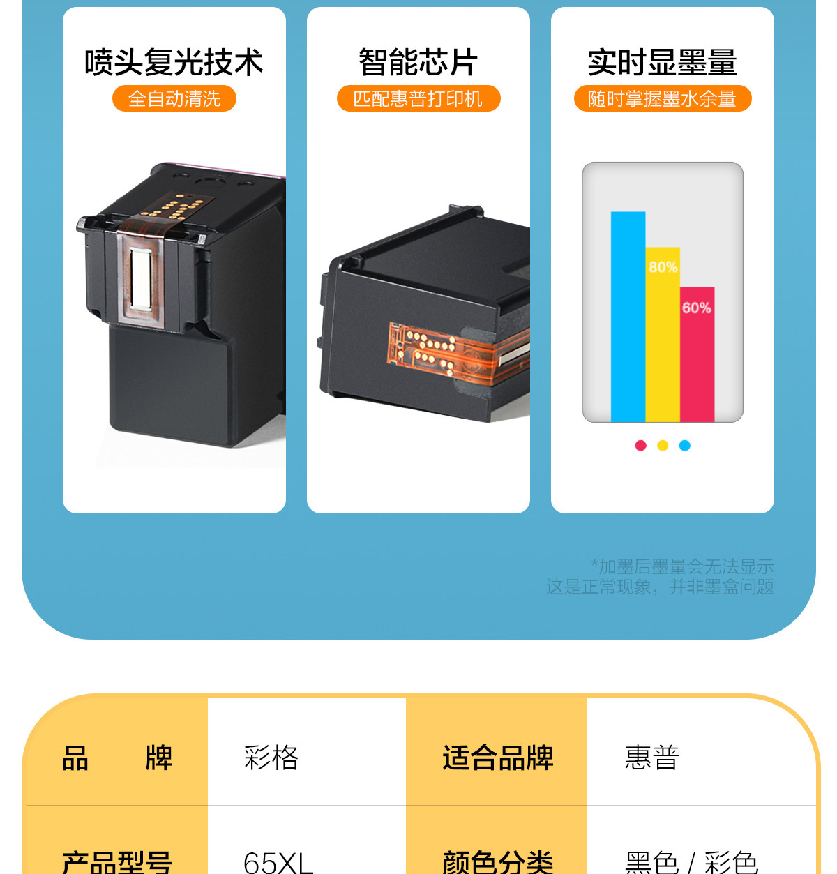 - 【Цвет】 65xl чернильный картридж